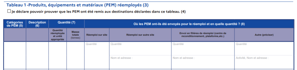✅ Pour le récolement du diagnostic PEMD, pour justifier les matériaux qui ont fait l’objet d’un réemploi recensés dans le tableau n°1 du Cerfa, notamment pour les matériaux qui ne sont pas cédés à des tiers mais sont réemployés sur une autre opération du MOA ⬇️